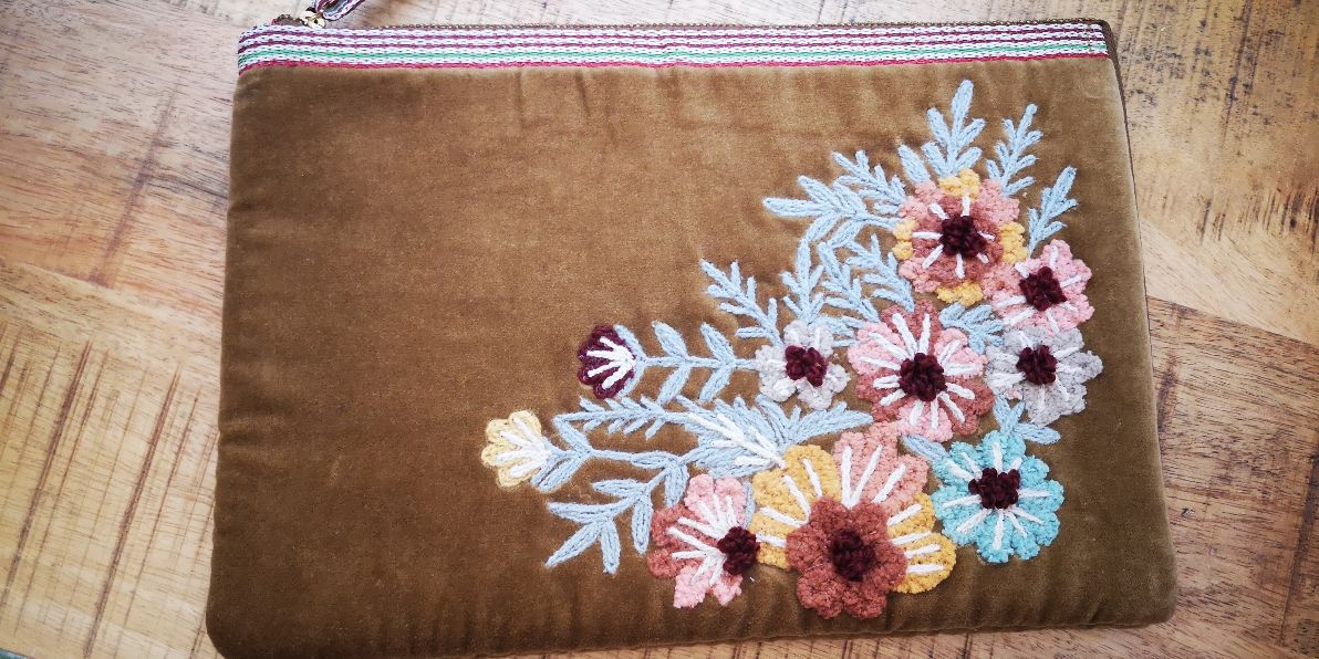 Samt Laptoptasche mit Stickerei in hübsch Boho Stil