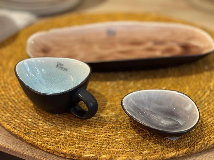 Krakelee-Effekt Keramik set mit sanftem Schwarzton matter Unterseite