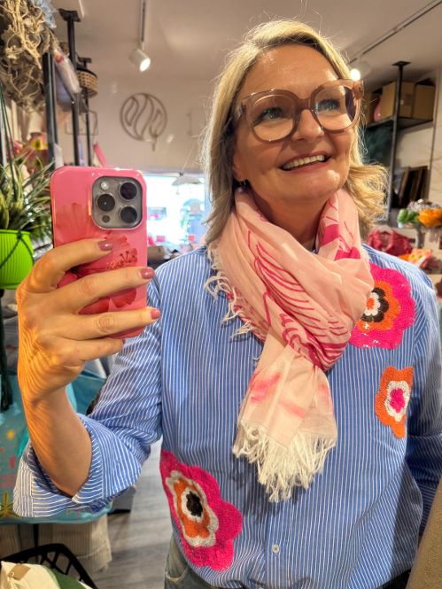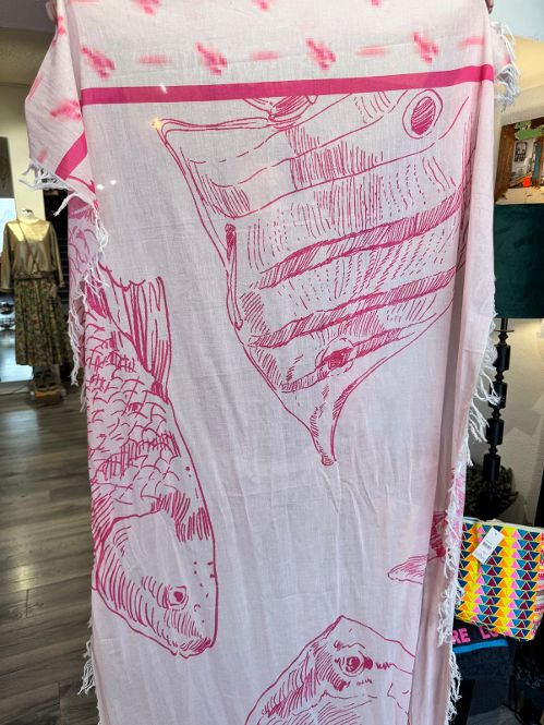 Hellrosa striped Summer Scarf mit over all Fischprint aus weicher, leichter cotton